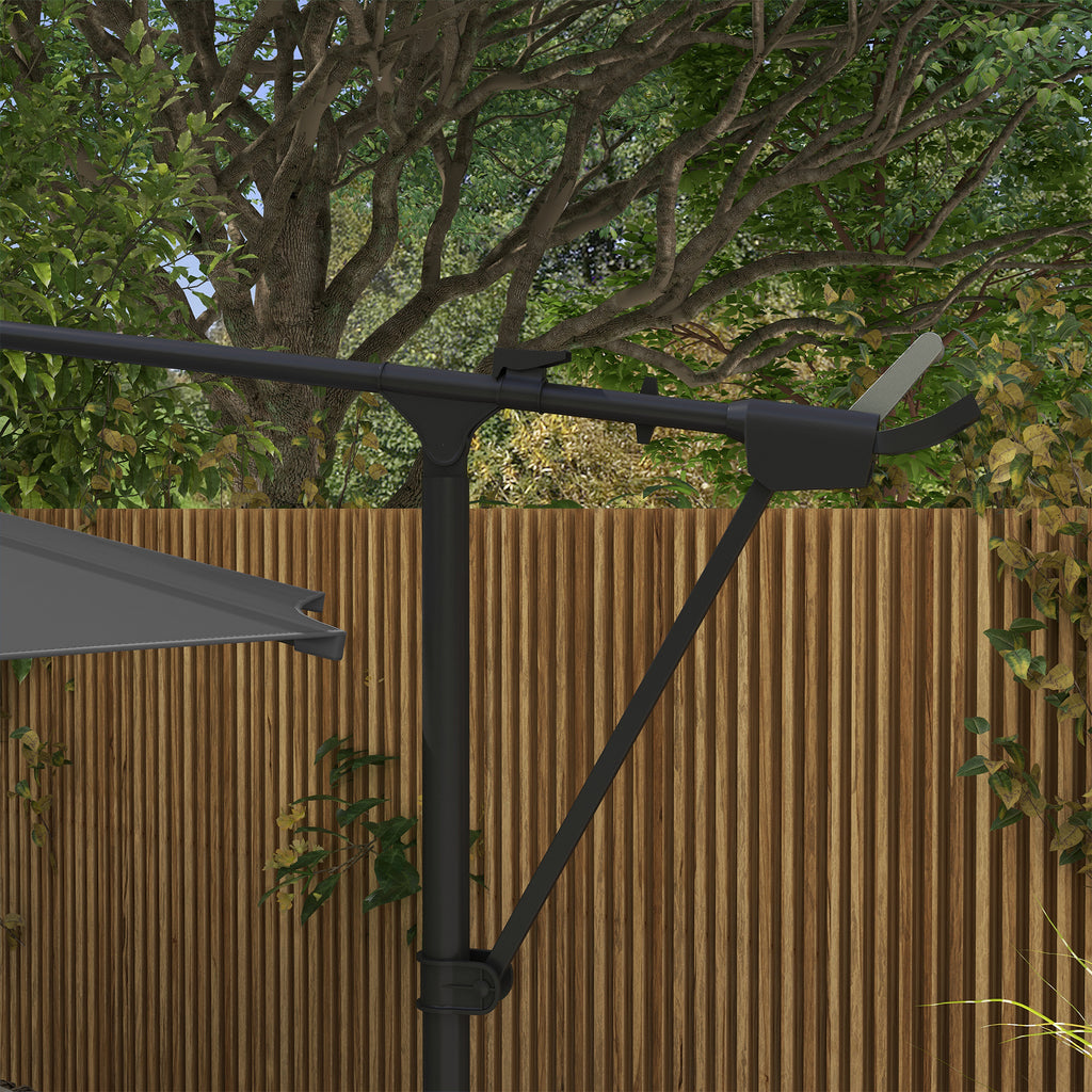 Sfrutta la presenza di un ombrellone a braccio per coprire il tuo set da giardino, dal tavolo alle sedie fino al divano a bordo piscina. Gestisci facilmente l'ombra durante le diverse fasi della giornata agendo sul pratico pedale alla base e ruotandolo di 360°. Mantieni la giusta ombra all'esterno e goditi pasti, conversazioni e momenti divertenti in compagnia nel relax più totale.