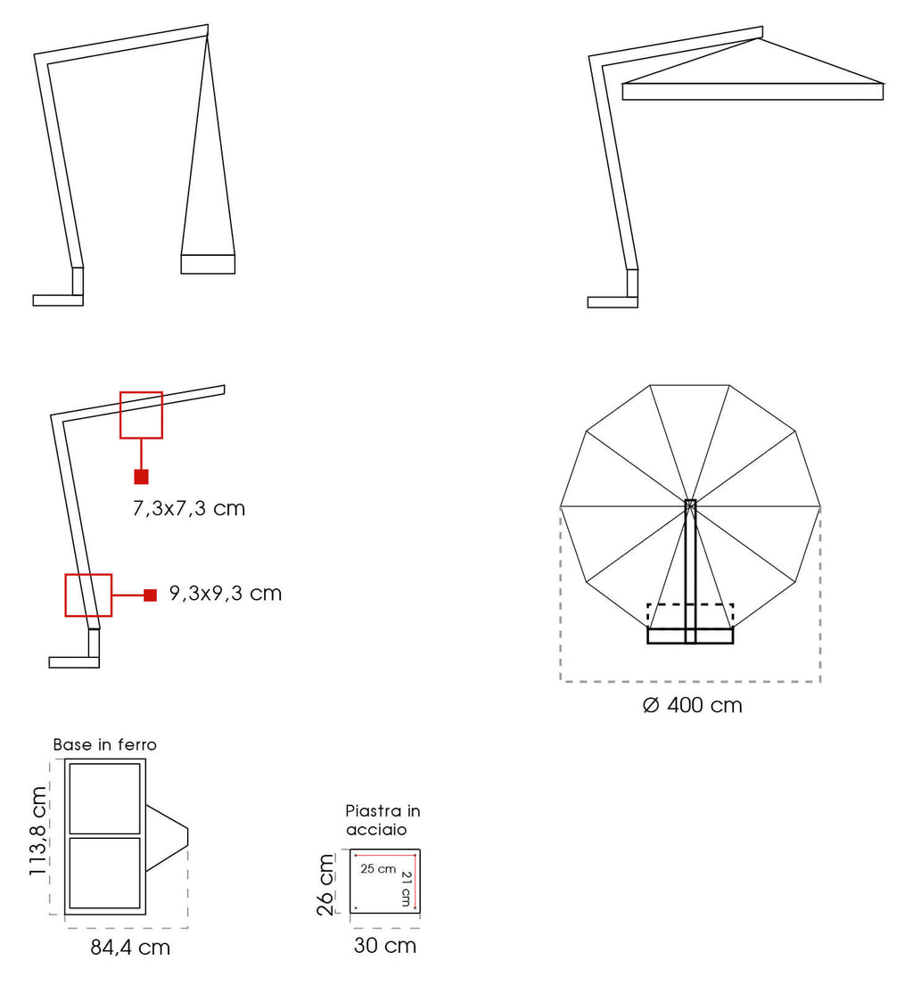 Parasol décentralisé rond modèle LISBONA : pour ceux qui aiment le style classique dans des décors raffinés et élégants.