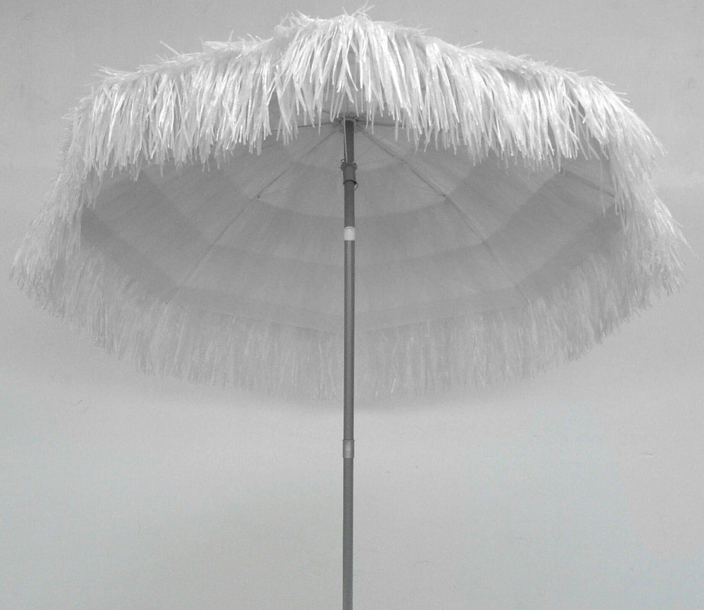 Parapluie Kenya recouvert de raphia de couleur unie. Idéal pour une déco "tropicale" de votre environnement extérieur.