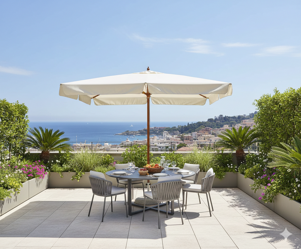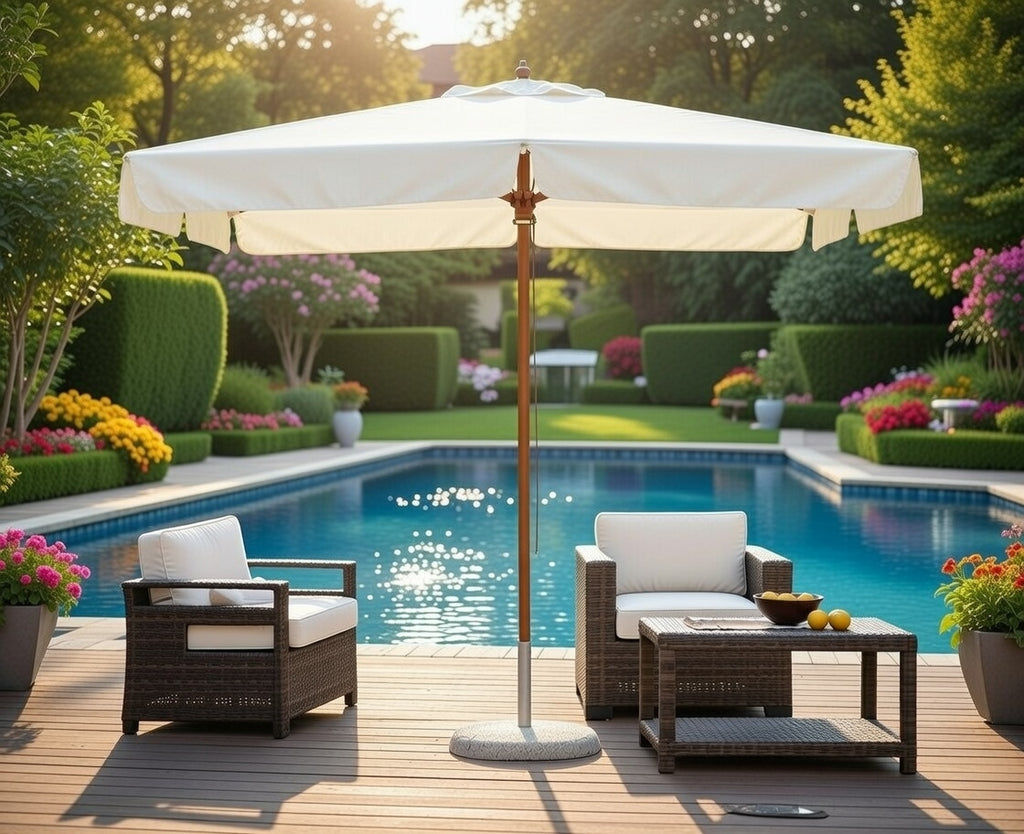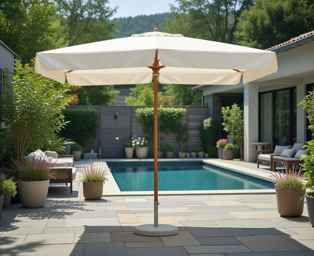 Parasol de Jardin 3x3 m Mât Ø48 mm en Bois Vorghini De Lux Ecrù