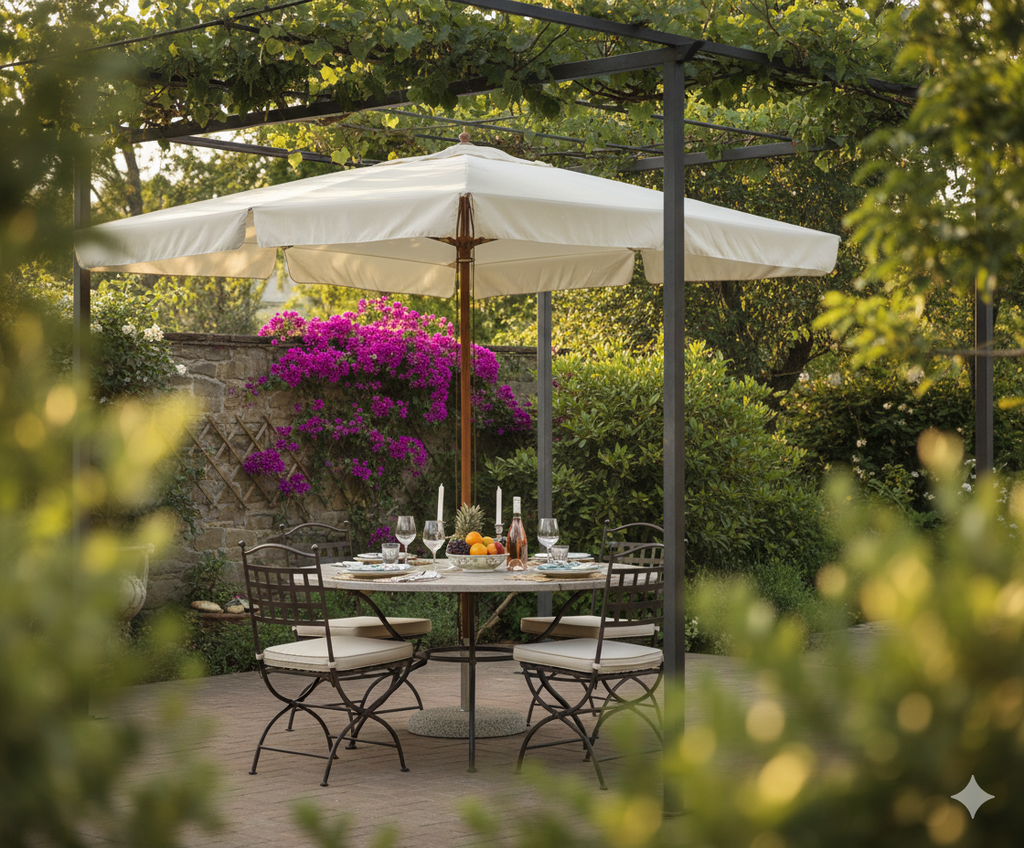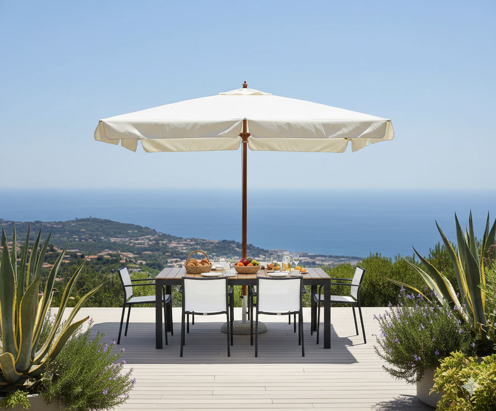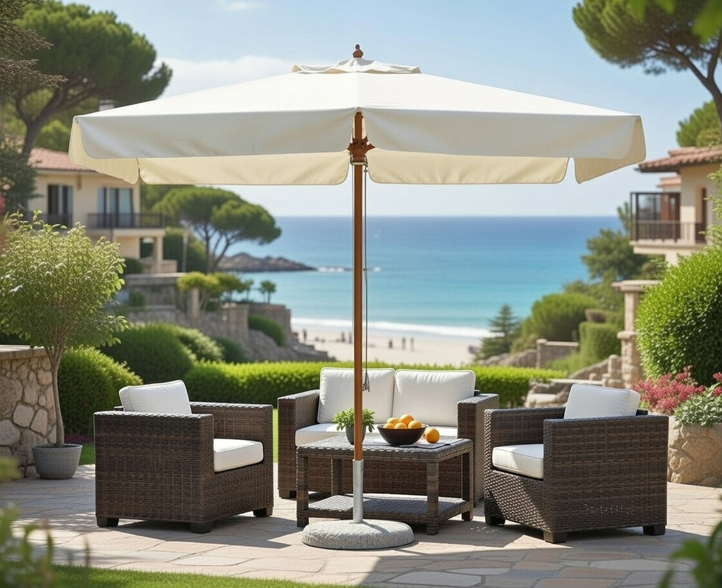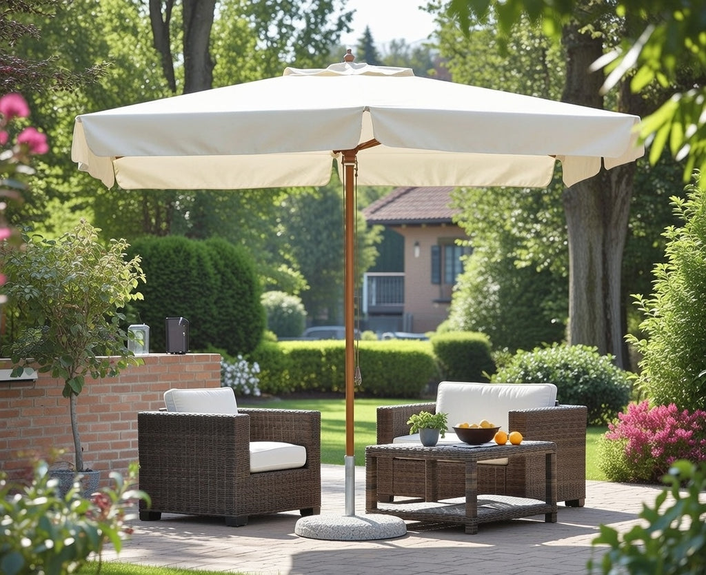 Parasol de Jardin 3x3 m Mât Ø48 mm en Bois Vorghini De Lux Ecrù