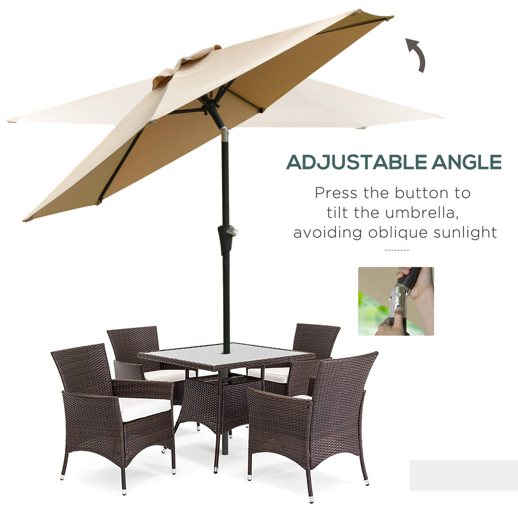 Ombrellone da Giardino Inclinabile con Apertura a Manovella e 6 Stecche 2,3x2m Cachi
