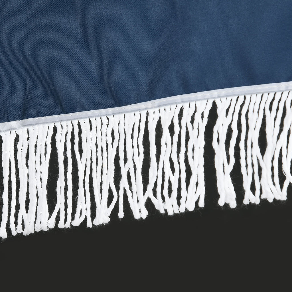 • ACCESSORIO DI STILE: Questo ombrellone rotondo frangiato a righe blu e beige dallo stile retrò diventerà il tuo accessorio decorativo preferito da utilizzare in spiaggia o giardino. puoi inserirlo anche a bordo piscina, nelle terrazze o nei patii