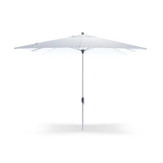 Parasol carré, avec système d'ouverture/fermeture à manivelle, mât (2 sections) en aluminium anodisé, 8 baleines en aluminium, tissu polyester gr. 250/m2 en couleur Blanc.cm 300 X 300, poteau d. mm 38, lattes d. 19mm