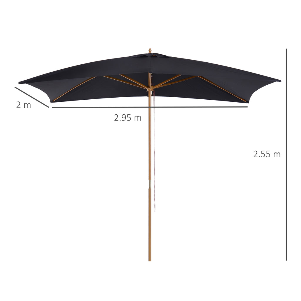 Parasol de jardin rectangulaire 2x3m en bois et polyester noir