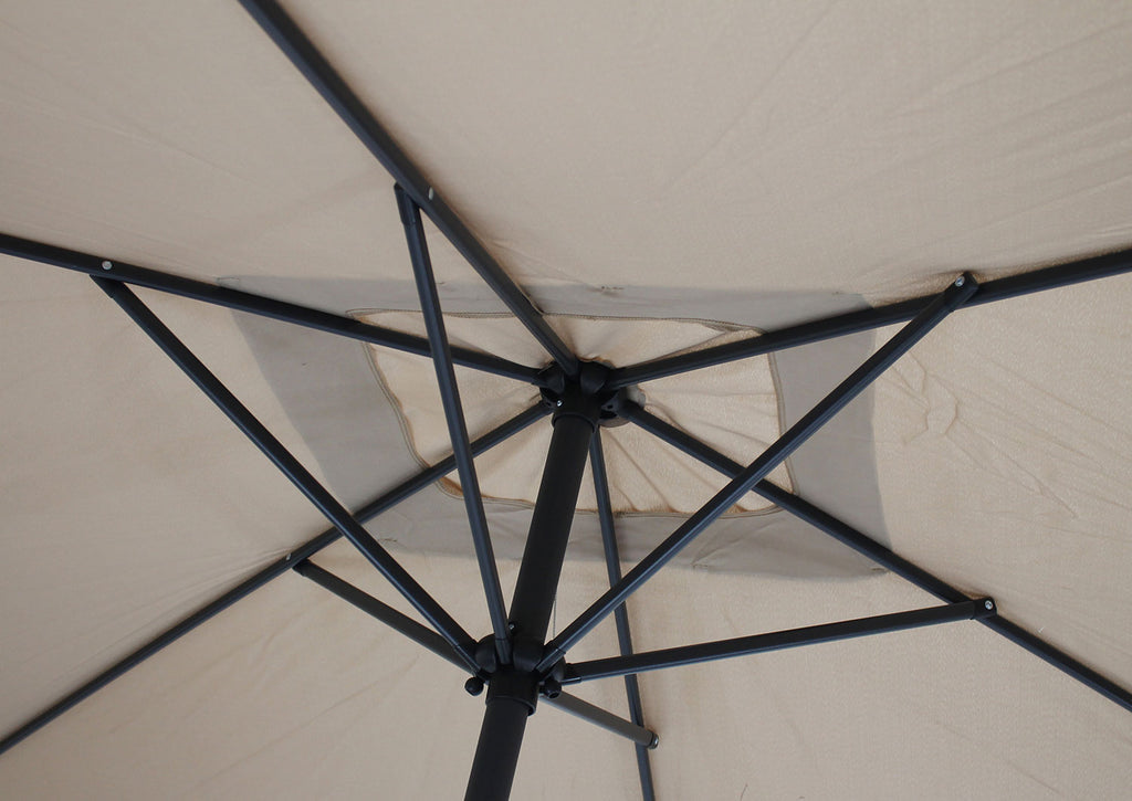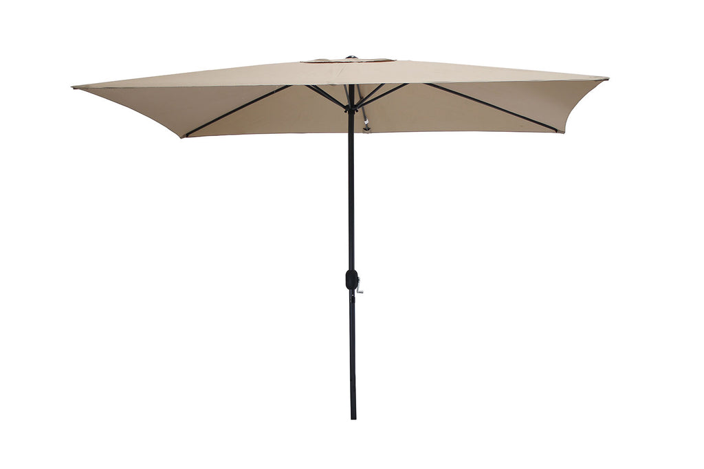 Ombrellone rettangolare in acciaio e poliestere. La sua tonalità talpa crea un'atmosfera elegante e rilassante, perfetta per goderti il tuo giardino o terrazzo. Il robusto palo in acciaio con diametro di 38 mm e le sei stecche in acciaio da 12x18 mm garantiscono stabilità e resistenza, anche nelle giornate più ventose grazie all'apertura antivento. Con un semplice gesto della manovella, puoi aprire e chiudere l'ombrellone senza sforzo, permettendoti di regolare l'ombra secondo le tue esigenze. Questo ombrellone non è solo un accessorio funzionale, ma un vero e proprio rifugio di tranquillità, dove puoi rilassarti, leggere un libro o condividere momenti speciali con la famiglia e gli amici. Senza la base inclusa, hai la libertà di scegliere quella che meglio si adatta al tuo spazio e stile. Lasciati avvolgere dal comfort e dall'eleganza di questo ombrellone, e trasforma ogni momento all'aperto in un'esperienza indimenticabile.