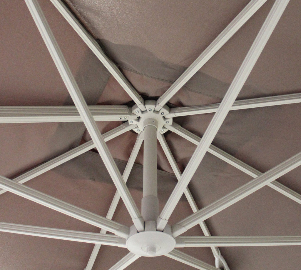 Parasol de jardin déporté Saturno 3x3m en aluminium gris et tissu gris tourterelle