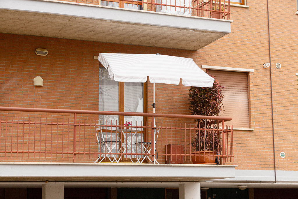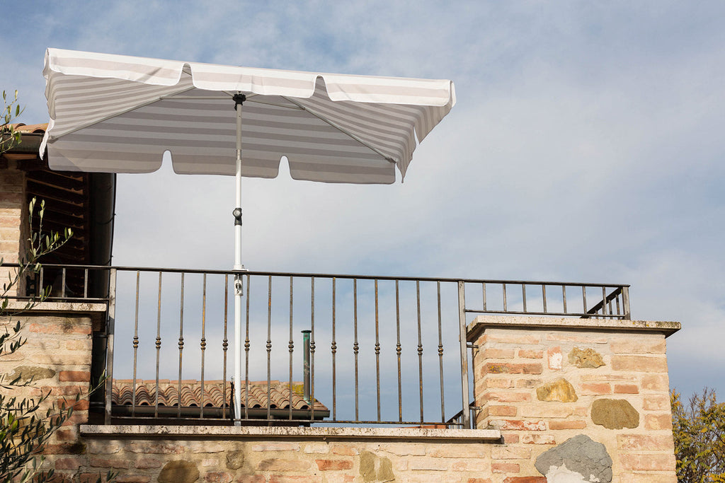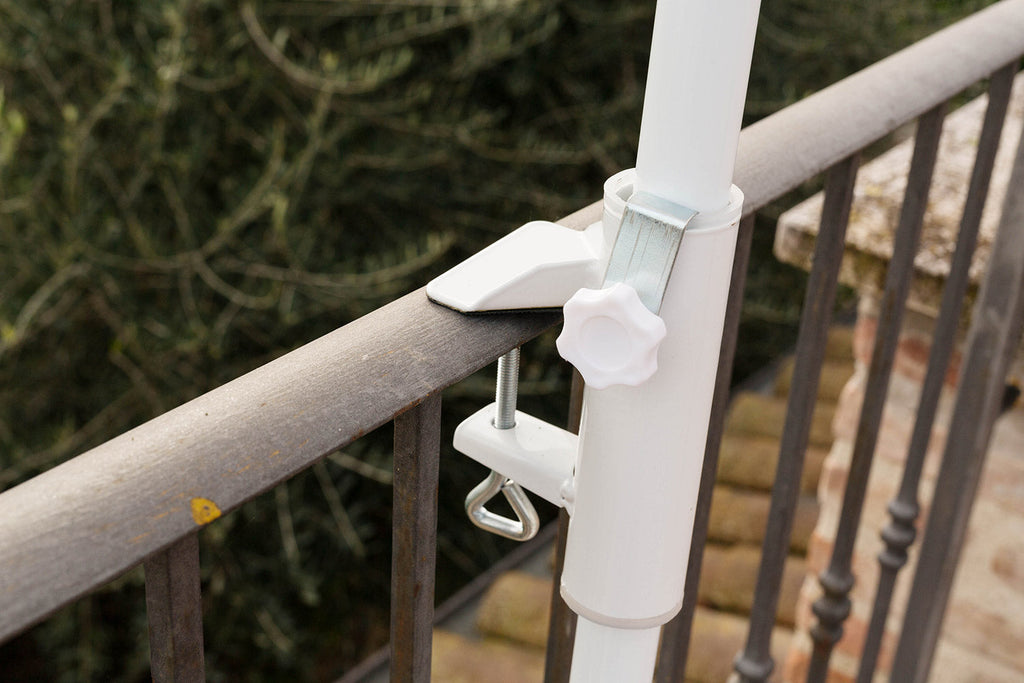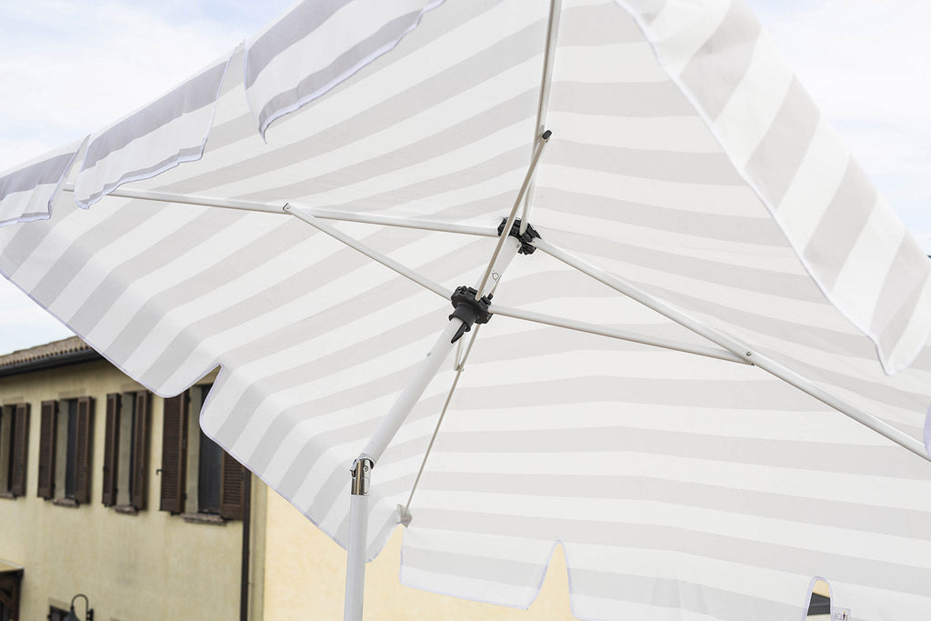 Le parasol rectangulaire Flexo avec structure en aluminium et base de 25 kg convient à de multiples usages et situations domestiques. Il peut être réglé en hauteur, incliné des deux côtés longs et ancré au garde-corps. Il est également équipé d'un système de sécurité de fixation sur un garde-corps ou un mur qui vous permettra d'être à l'abri des rafales de vent pour des installations même en étages élevés sans courir le risque d'aucun dommage. Il peut également être utilisé sur les balcons et les jardins grâce à un socle en plastique recyclé remplissable d'eau ou de sable, très facile à ranger en hiver en le vidant simplement.
