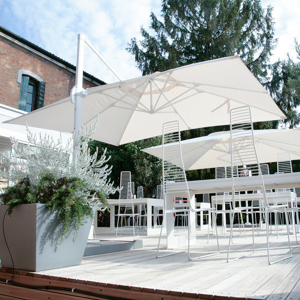 L'ombrellone decentrato da giardino in alluminio, di colore panna, unisce stile e funzionalità per creare un'area ombreggiata versatile e di design nel tuo spazio esterno. Con una struttura decentrata, offre una copertura ampia e regolabile senza compromettere lo spazio sottostante.Realizzato in alluminio, l'ombrellone è leggero e resistente alle intemperie, garantendo una durata nel tempo. Il colore panna conferisce un tocco elegante e neutro, adattandosi facilmente a diversi stili di arredamento esterno. Questo ombrellone non solo fornisce protezione solare, ma diventa anche un elemento decorativo che arricchisce l'estetica del tuo giardino o terrazzo. Pratico e di design, è la scelta ideale per godere degli spazi all'aperto con comfort e stile.
