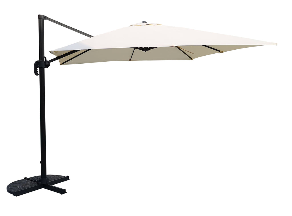 Ombrellone girevole quadrato a braccio in alluminio da giardino 3x3x2,5m ideale per creare uno spazio riparato da sole e pioggia, consente di trascorrere all'aperto anche le ore più calde del giorno. Il palo in alluminio 53x76 mm alto 254 cm offre la massima resistenza al vento forte. La Struttura durevole e i materiali di qualità consentono l'utilizzo anche su terrazze, in bar e ristoranti all'aperto o su spiagge.