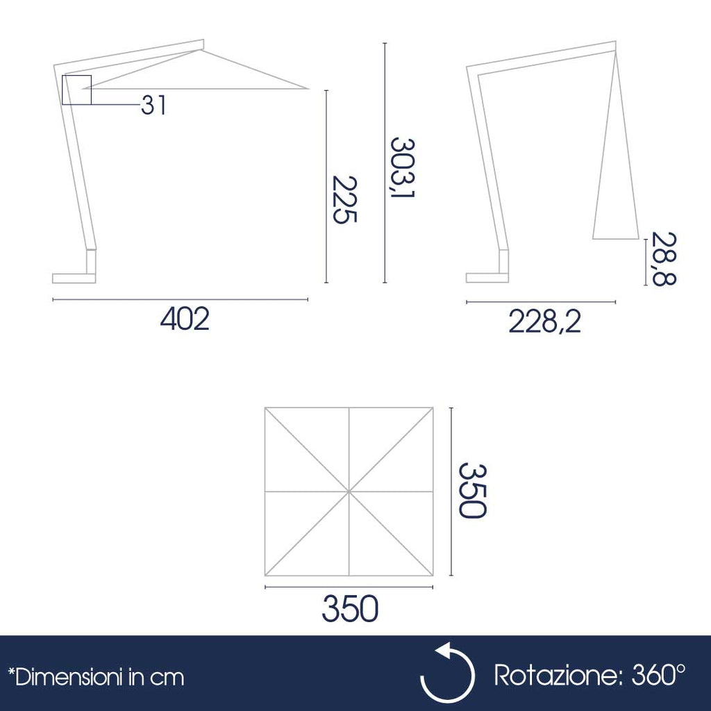 Ombrellone Decentrato da Giardino 3,5x3,5m Braccio in Legno Ecrù