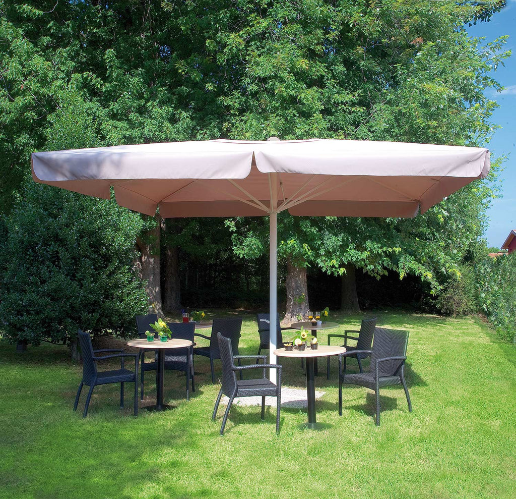 Parasol de Jardin Télescopique en Aluminium 4X4m avec Manivelle Vorghini ConTract Blanc et Taupe