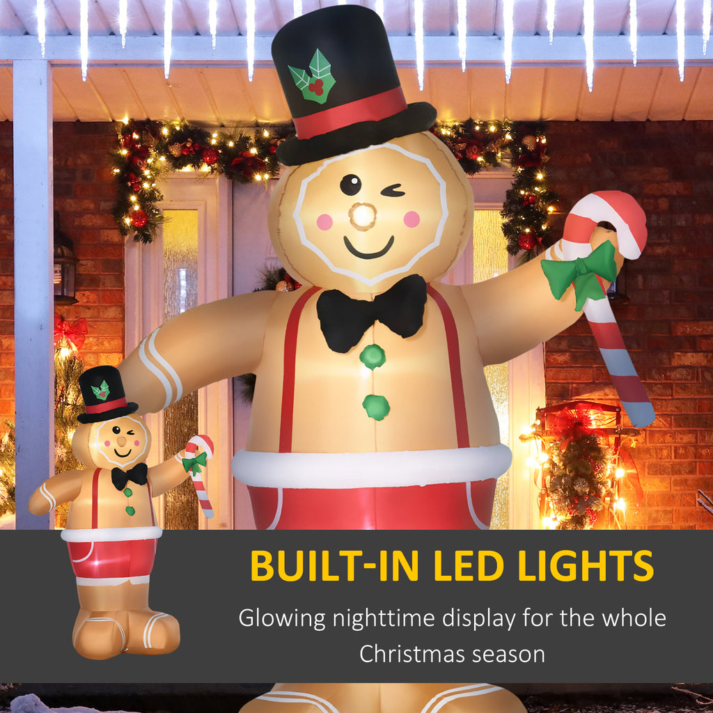 - Durable : fabriqué en tissu polyester, notre bonhomme en pain d'épice gonflable est parfait pour résister à une utilisation en extérieur. Sont également inclus 6 piquets de sol, 3 cordes tempête et 2 sacs de sable pour fixer fermement la décoration gonflable au sol