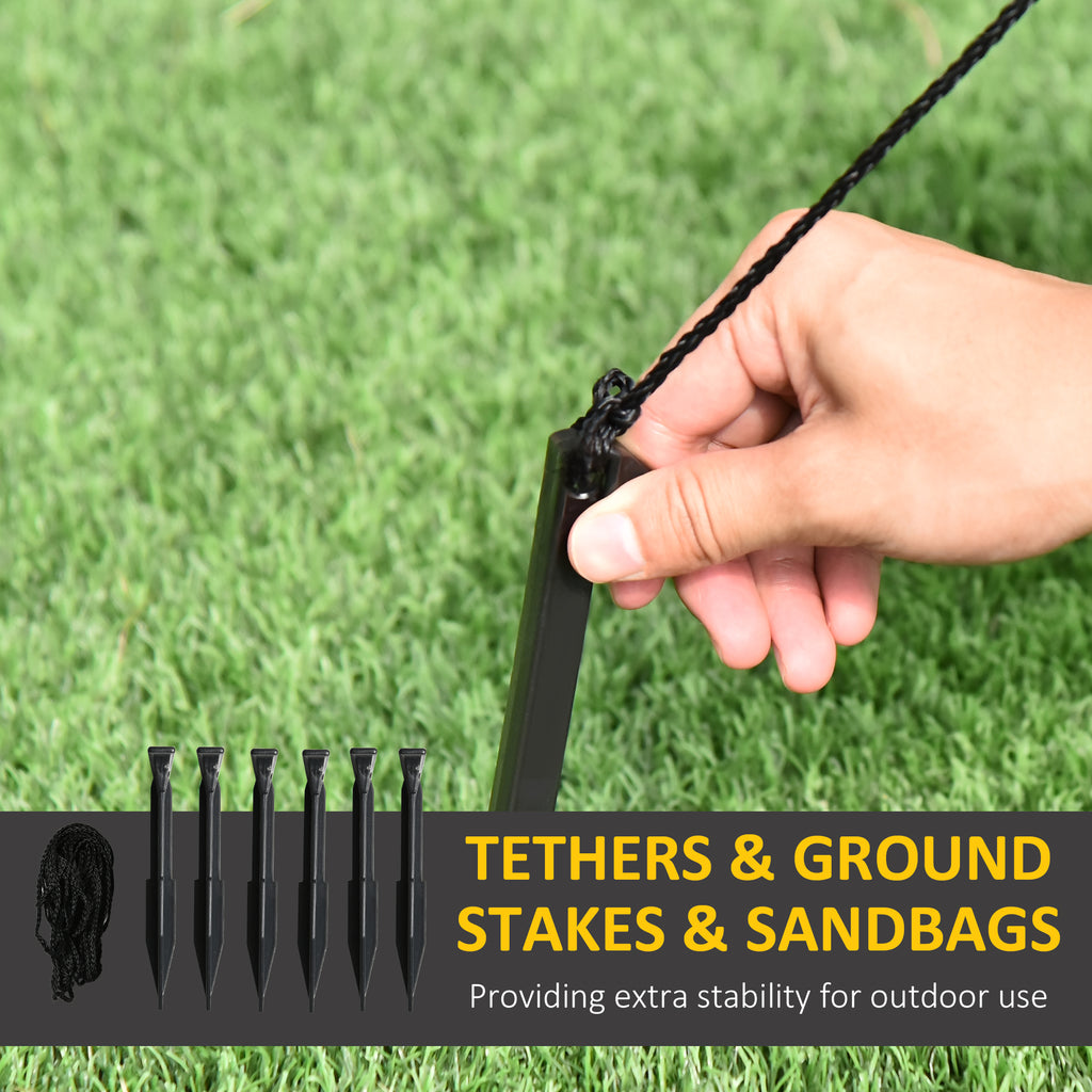 - 6 piquets, 3 cordes et 2 sacs de sable pour la stabilité