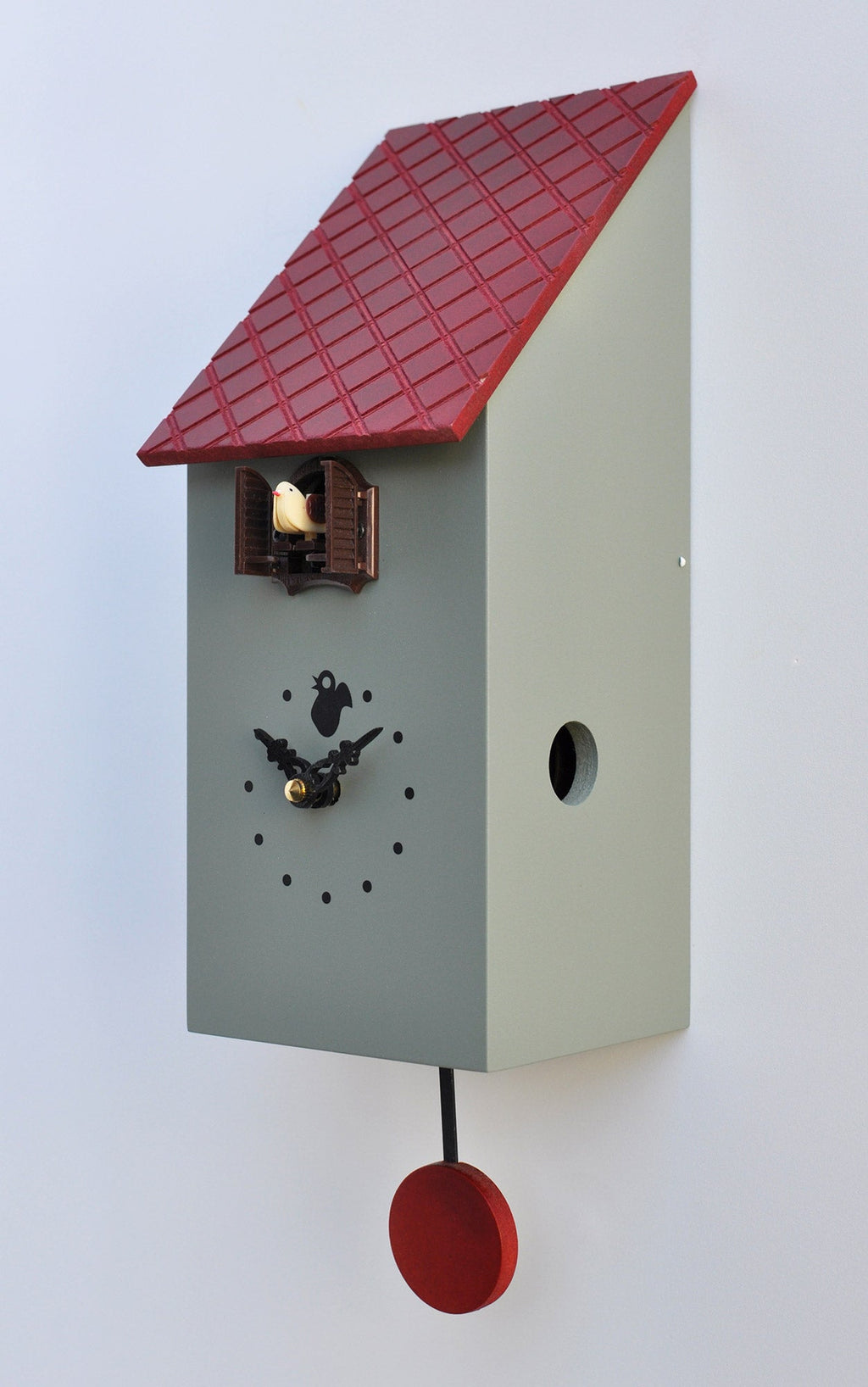 Horloge à Coucou Murale 13x30x12 cm Pirondini Italia Portofino Gris Ciment
