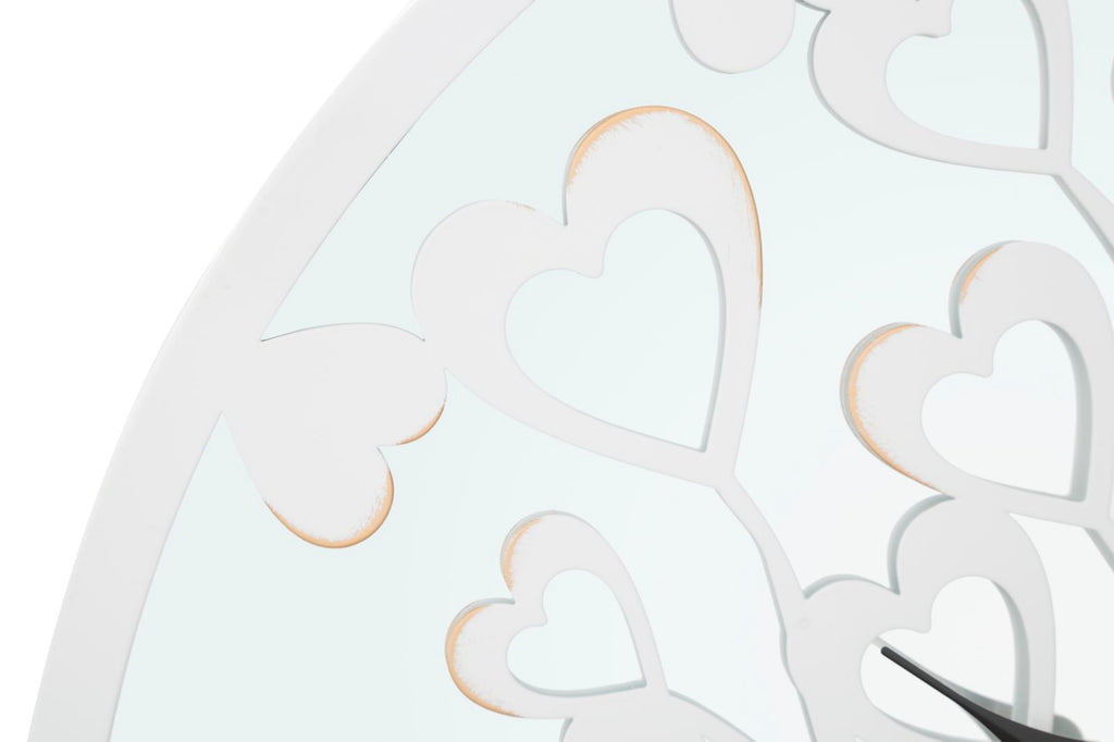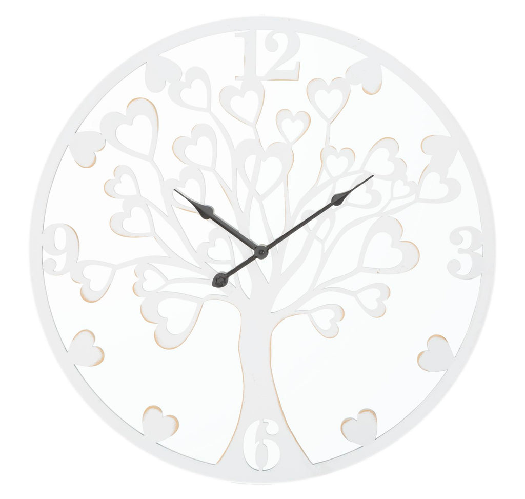 Horloge Murale Coeur/Arbre Ø55x4,5 cm en Fer MDF et Miroir Blanc