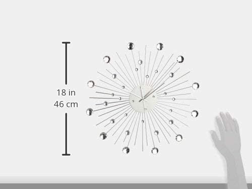 Cette horloge murale est en métal avec des cristaux décoratifs.