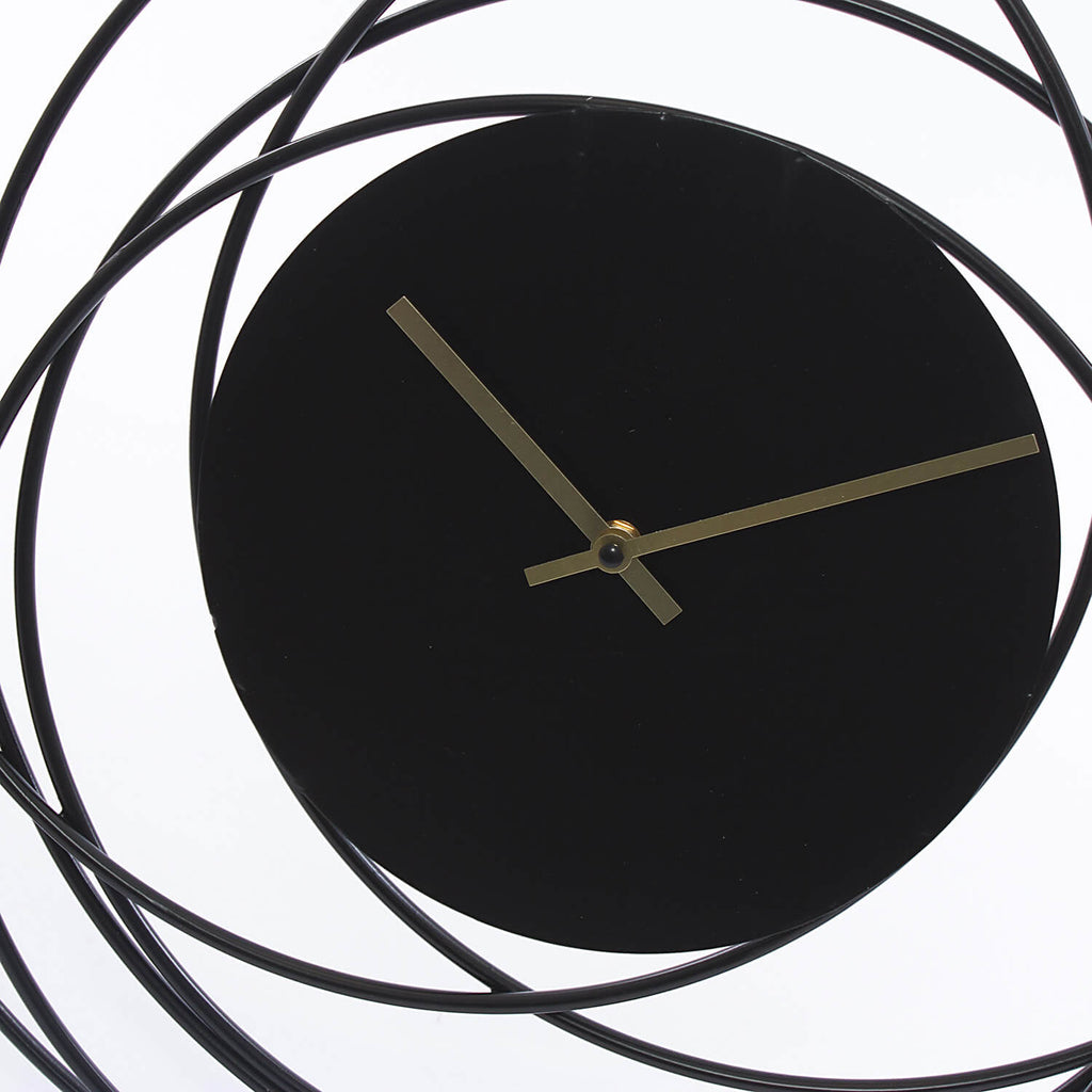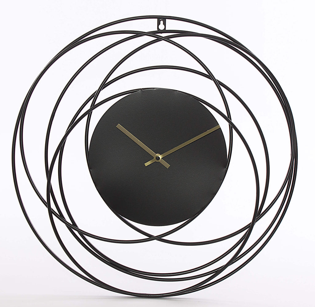 Orologio da parete in mdf e metallo nero. Decorazione elegante che gira attorno al quadrante. Una batteria richiesta, tipo AA, non è inclusa nella fornitura.