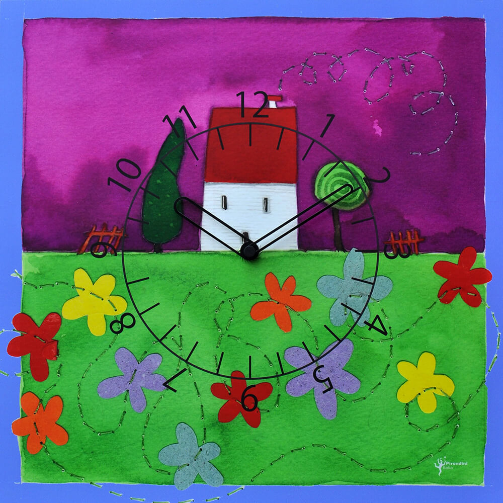 Horloge Murale Rectangulaire 40X40Cm Pirondini Italia Casetta Fiorita