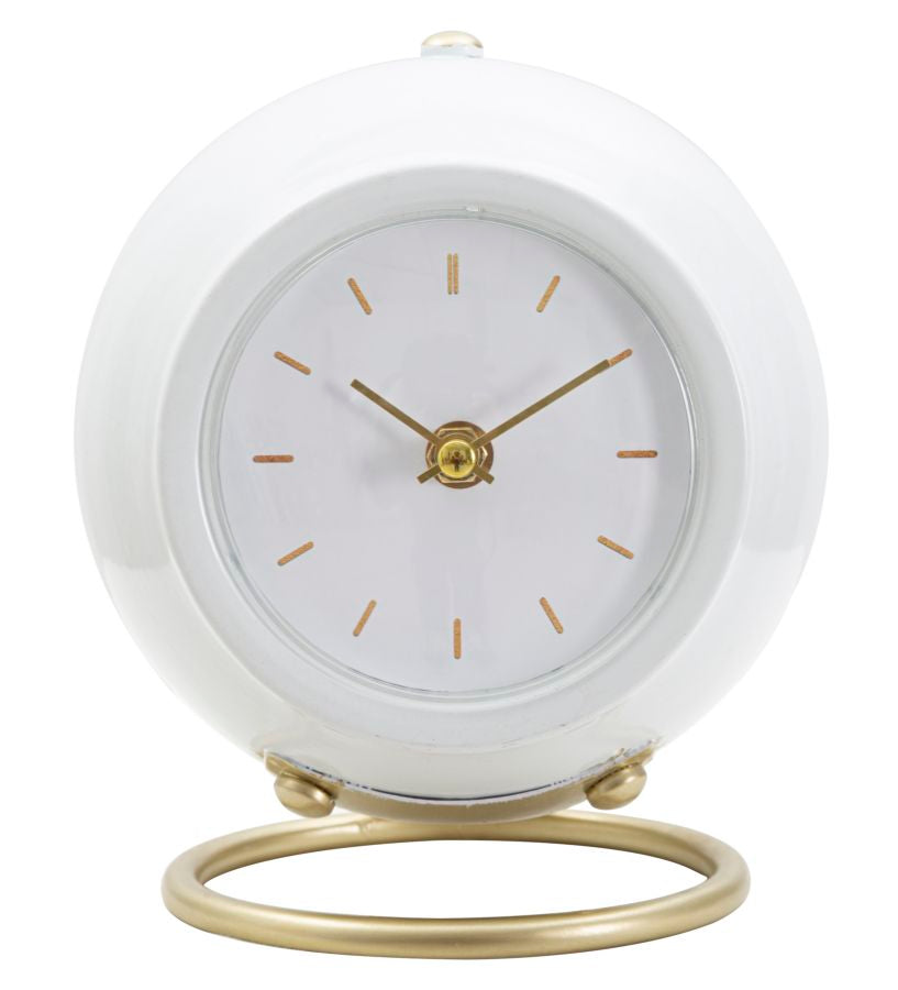 Orologio da Tavolo Ball Bianco 16x13x19 cm in Ferro e Plastica