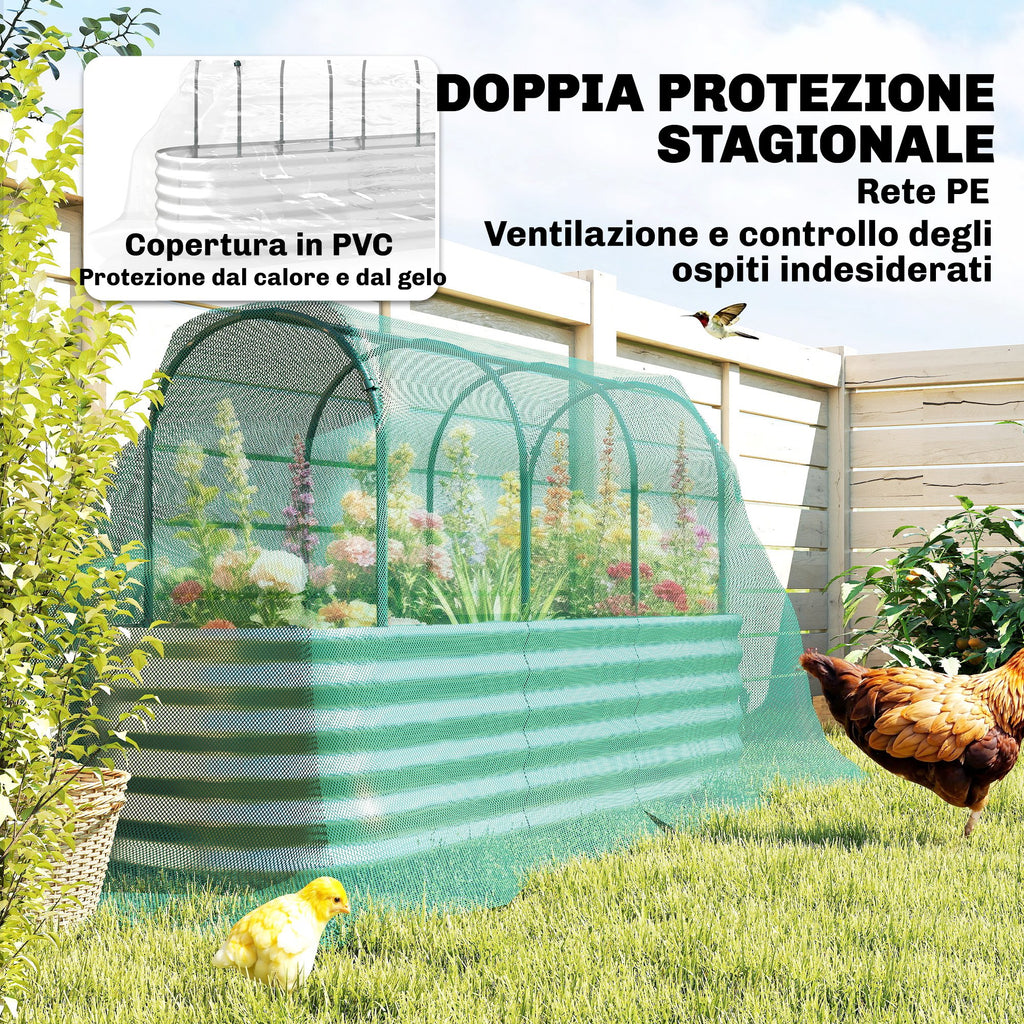• PROTEZIONE DUALE STAGIONALE: Orto rialzato da esterno con copertura trasparente per trattenere calore nei climi freddi e rete in PE per ventilazione e protezione dagli insetti in estate.