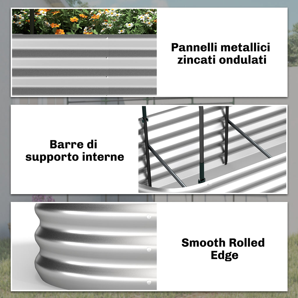 • DESIGN ROBUSTO E DUREVOLE: Metallo galvanizzato 0.5 mm, tubi d'acciaio verniciati, due aste centrali dell'aiuola rialzata da esterno per stabilità ottimale. Bordo piegato previene graffi durante il giardinaggio.