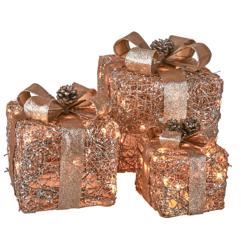 Paquets cadeaux 3 pièces avec 65 LED en rotin champagne