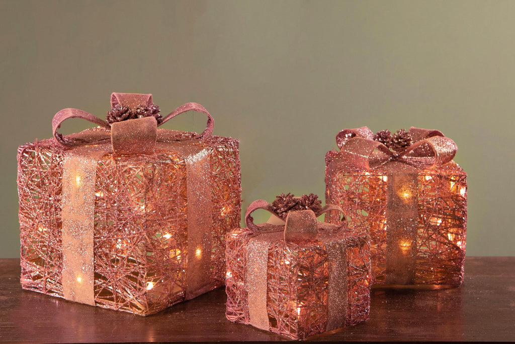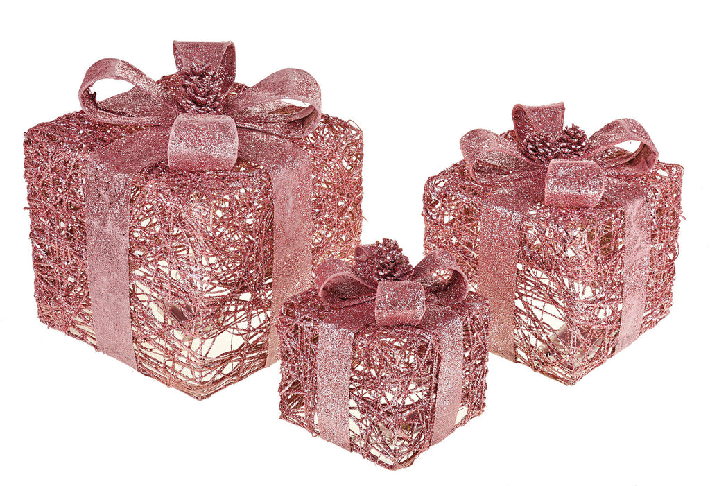 Coffrets Cadeaux 3 Pièces avec 65 LEDs H25 cm en Rotin Rose