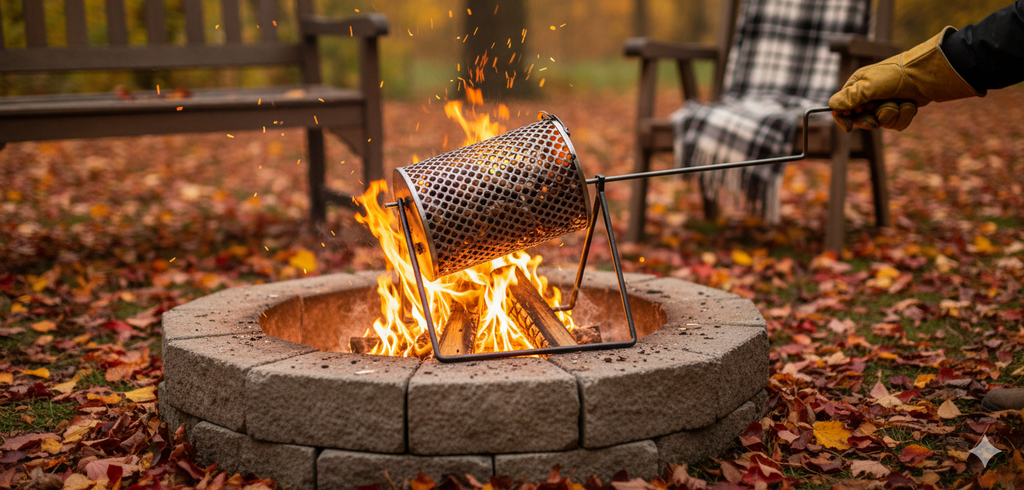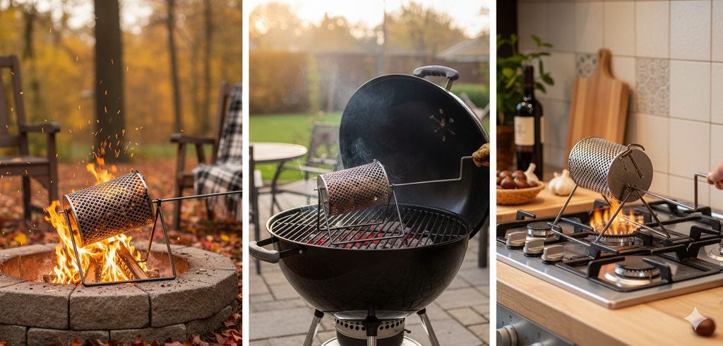 Padella per Castagne Girevole 85xØ18 cm con Supporto Rialzato in Acciaio