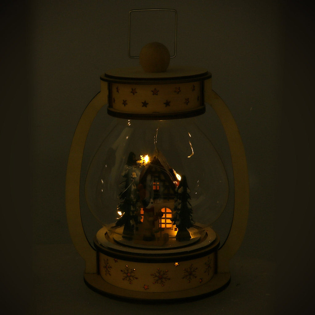 - Boule de verre led en bois de lanterne naturel cm 17x13xh23,5
