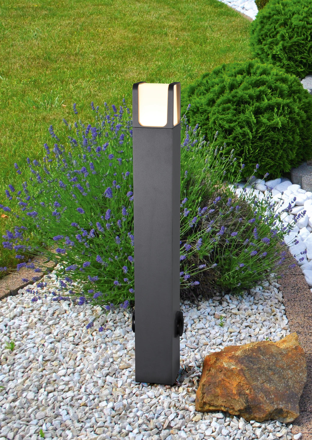 Ebro Palo Alto Extérieur Led En Fonte D'aluminium Anthracite Avec 2 Prises Schuko Ip54 H.80Cm
