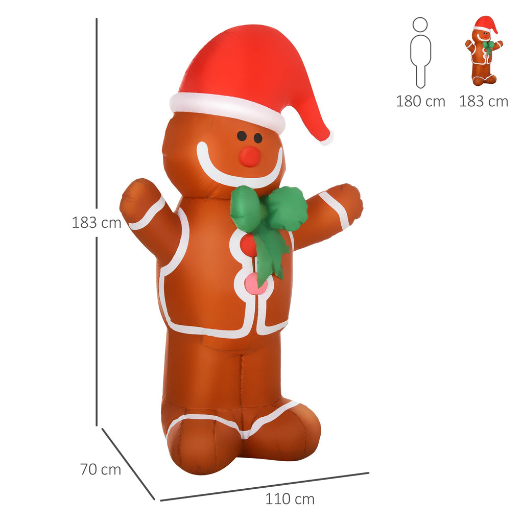 - DÉCORATION DE NOËL : Ce bonhomme en pain d'épices gonflable de 183 cm de haut apporte la magie des vacances dans votre jardin et vos espaces extérieurs.