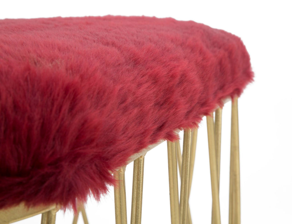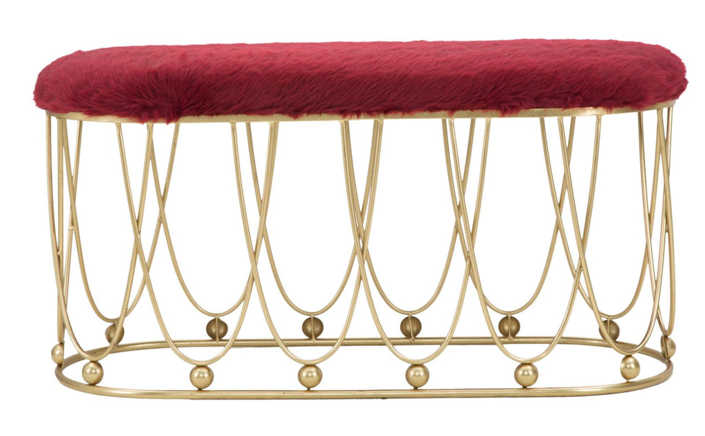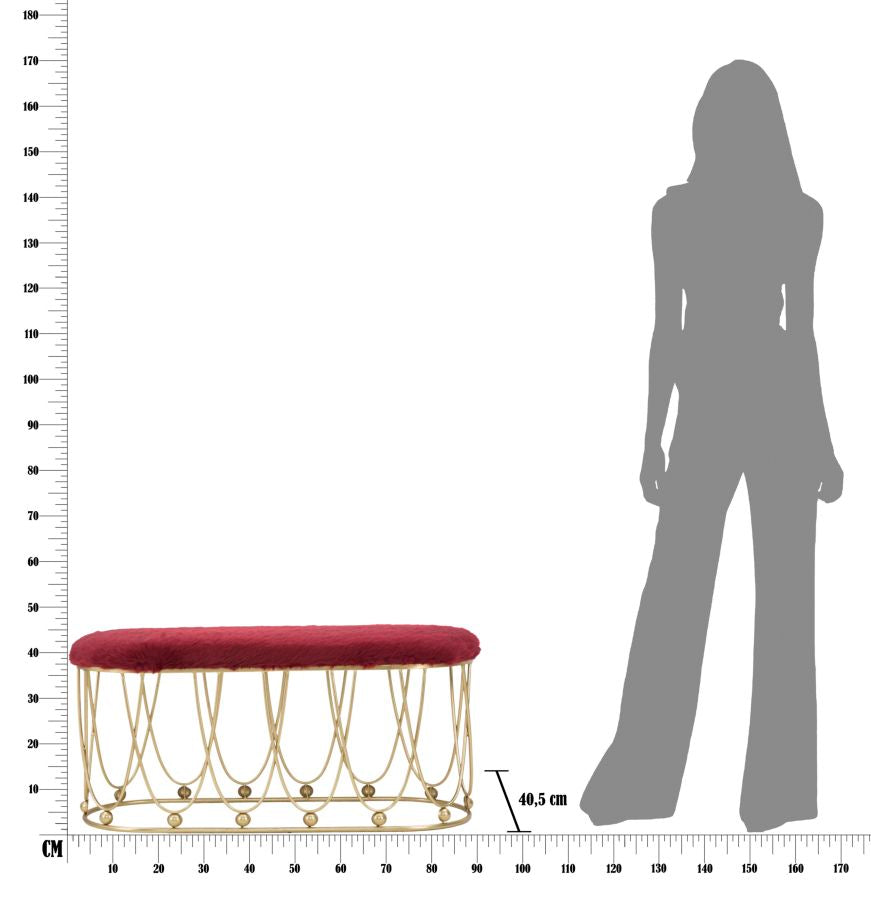 Banc Amelie Bordeaux 91,5x40,5x46 cm en Fer et Eponge et Polyester Bordeaux et Doré