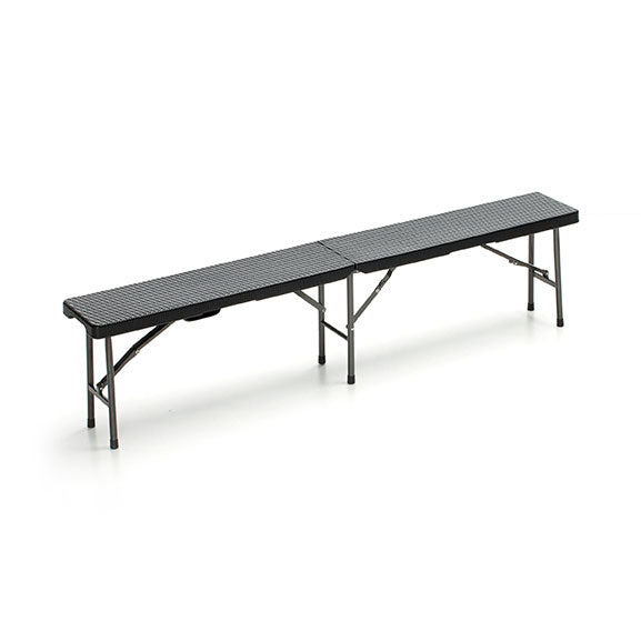 Structure du banc en fer thermolaqué gris, assise en PEHD (polyéthylène haute densité) noir avec traitement UV, dimensions cm 182 X 25 X h 43, épaisseur d'assise mm. 4.5, section tubulaire d. 22 mm x 1,0Banc de jardin pliant en rotin noir Taddei Plastik 180