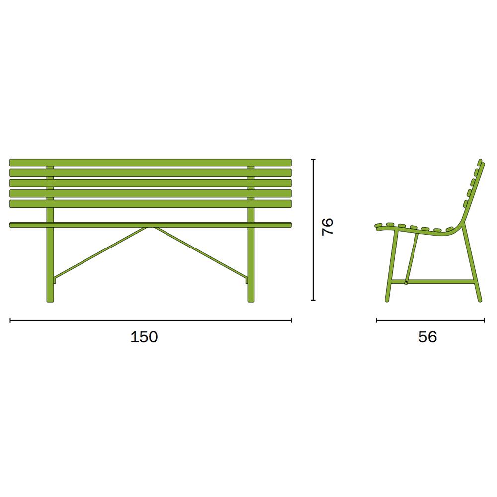 Banc d'extérieur en fer 3 places 150x56x76cm Vorghini Gallipoli Vert Olive