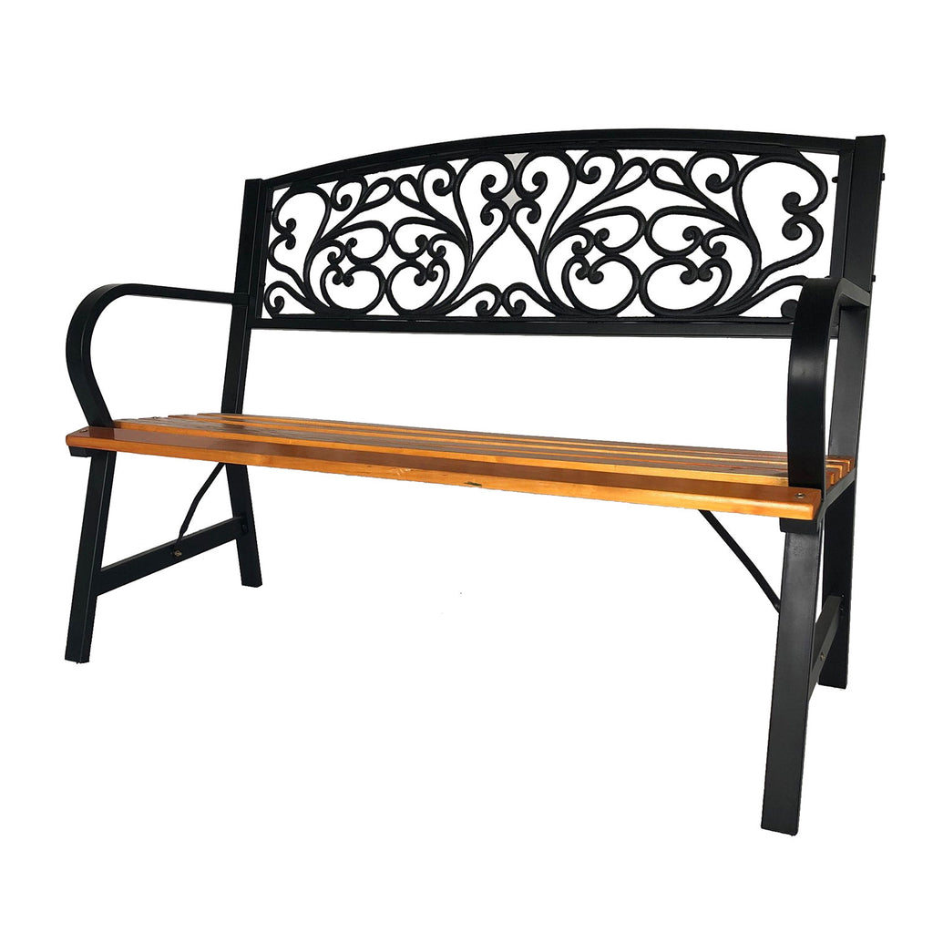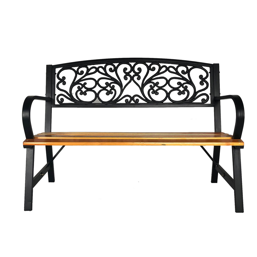 Panca da Giardino Schienale in Ghisa Seduta in Legno 120x56x87 cm Nero e Legno