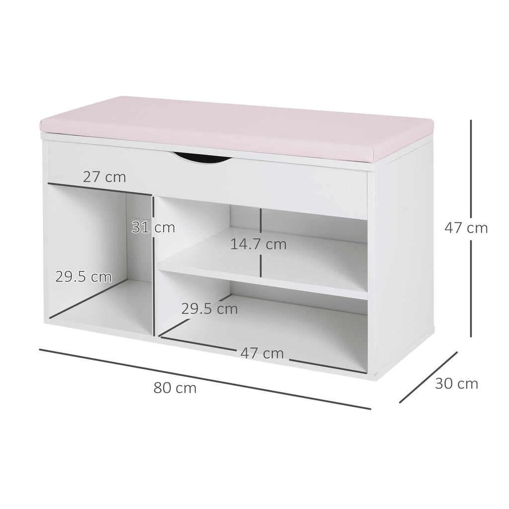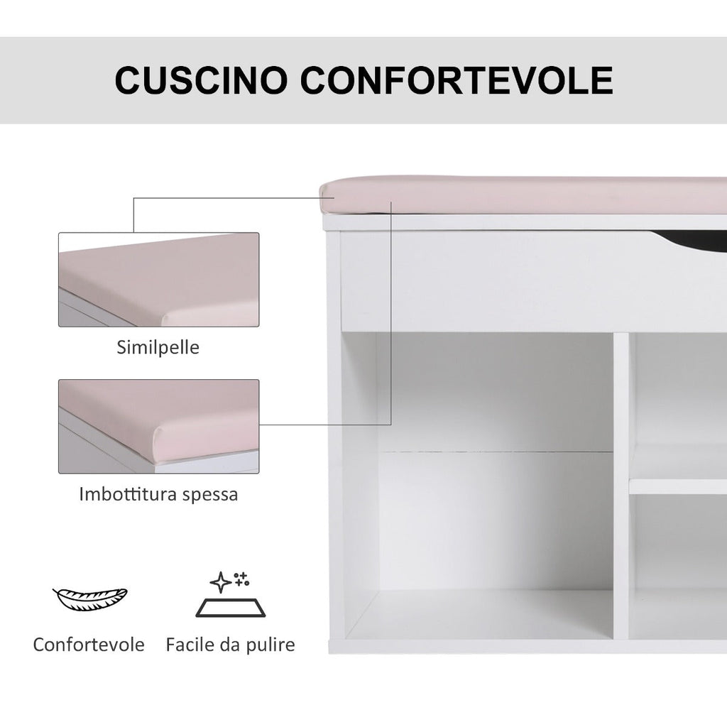 Banc d'Entrée Étagère à Chaussures avec Assise Pliante Rembourrée en Bois Blanc 80x30x47 cm