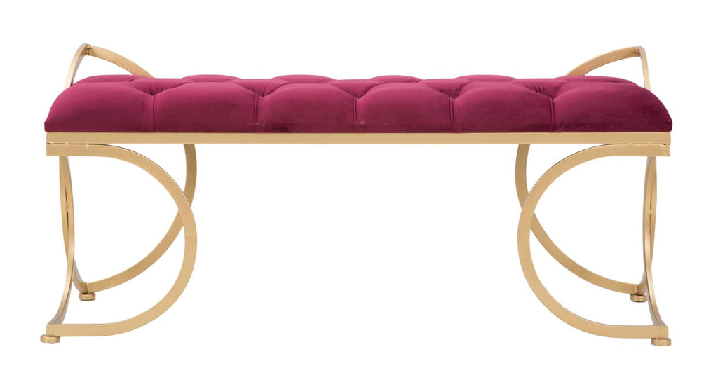 Banc Glam Luxy Bordeaux 103x43x47 cm en Fer et MDF et Éponge et Polyester Bordeaux et Or