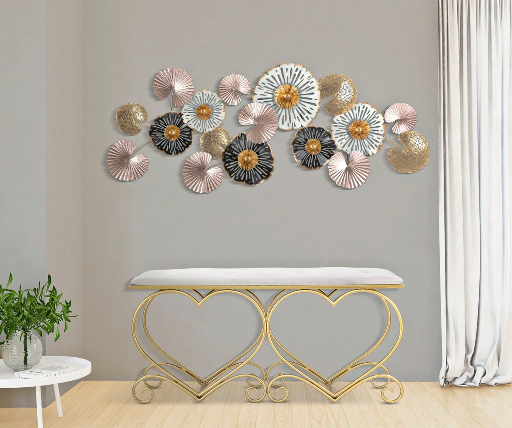 Banc Heart Cream 105x37,5x51,5 cm en fer et MDF et éponge et polyester doré et rose