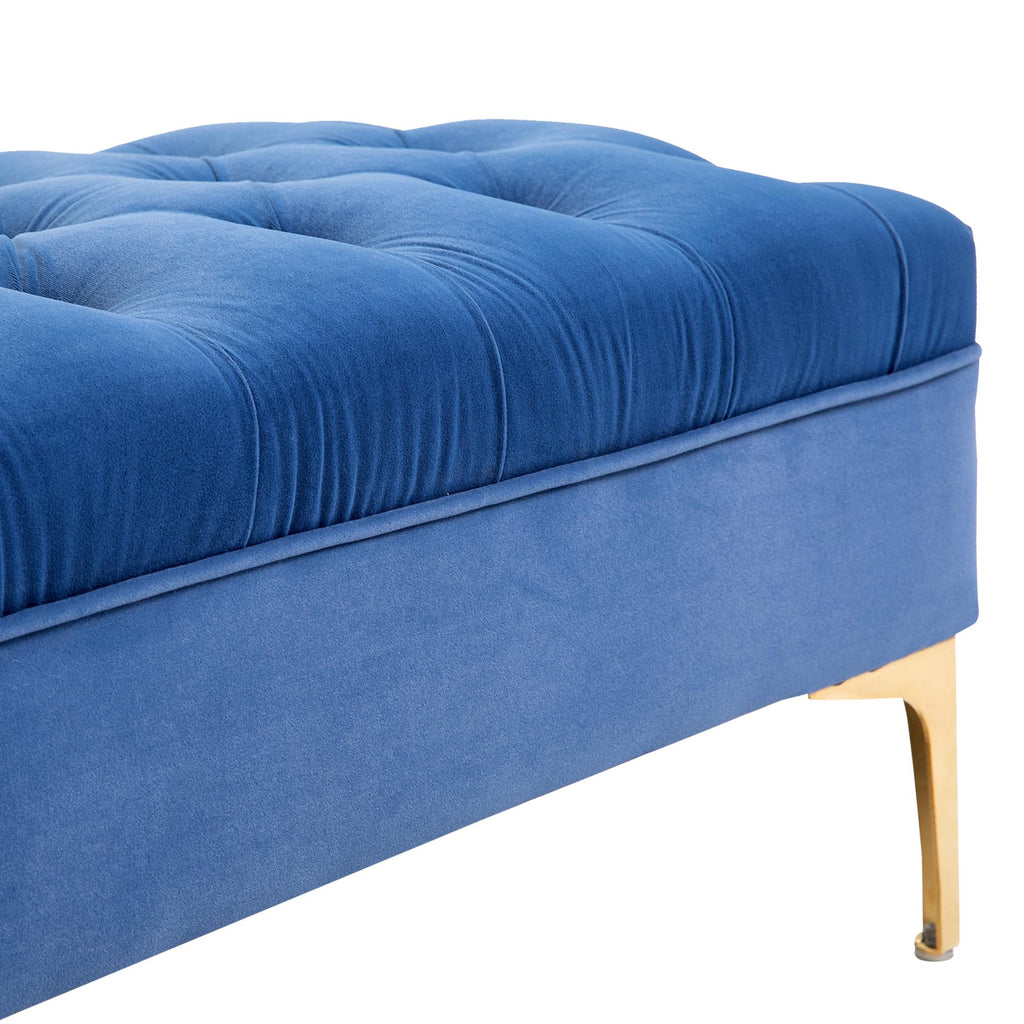 Banquette bout de lit rembourrée 118x45x42 cm en Tissu Velours Bleu