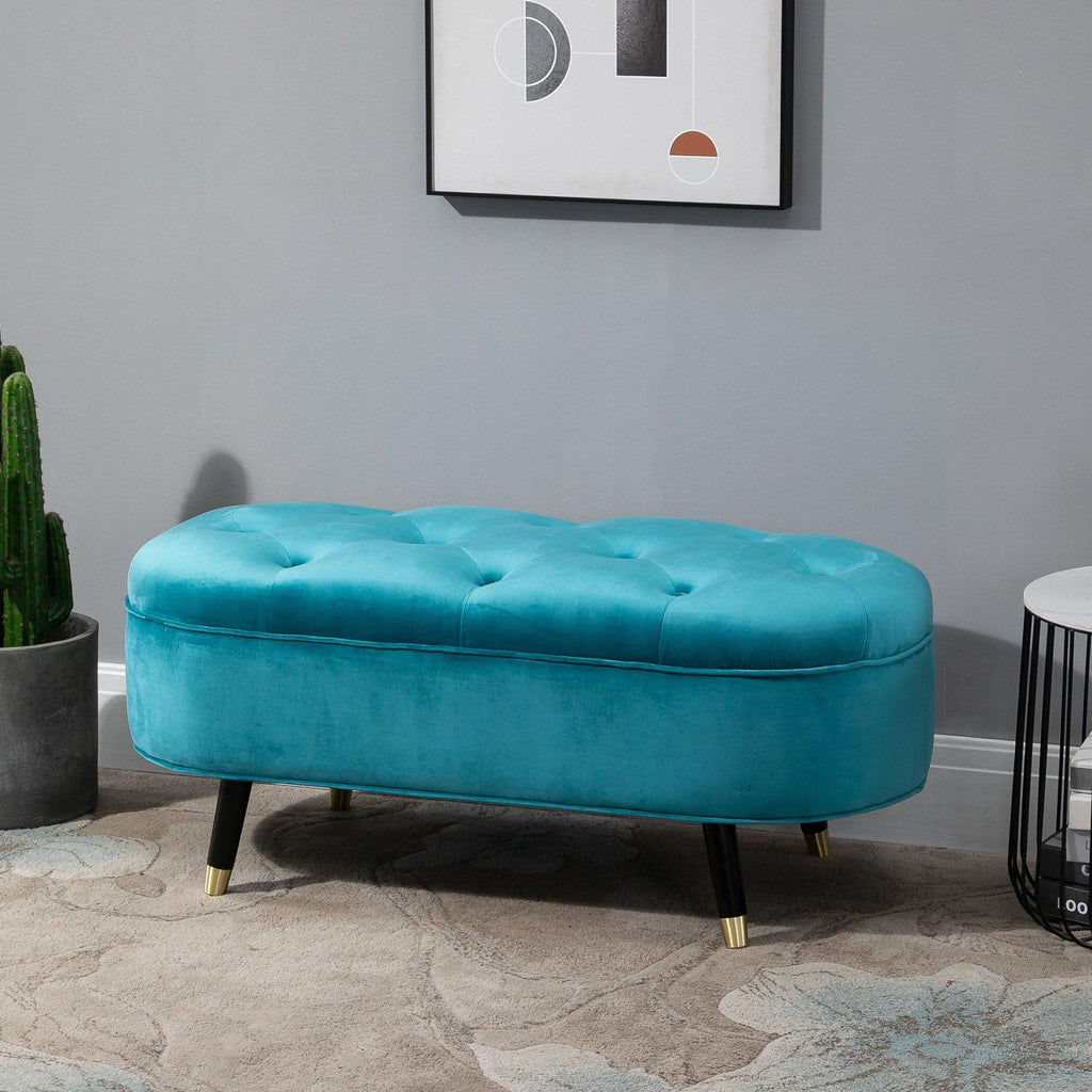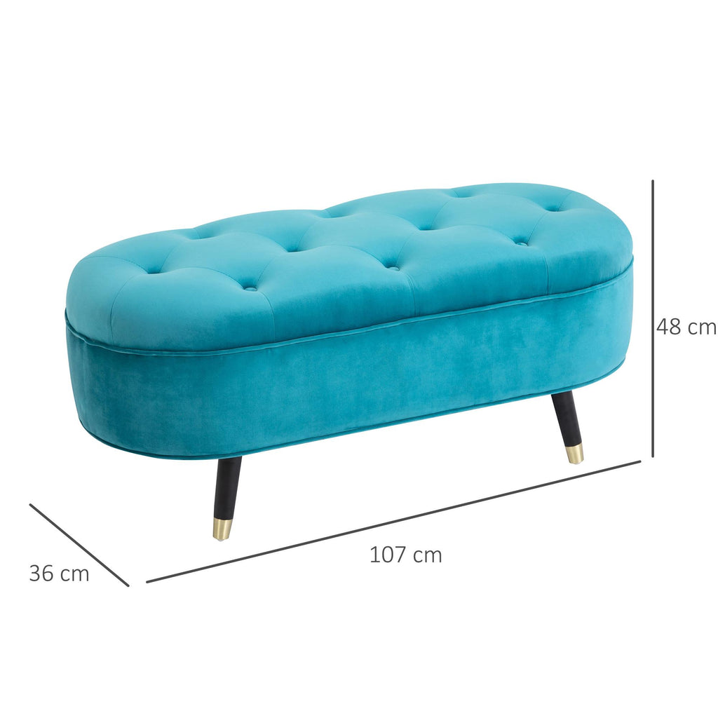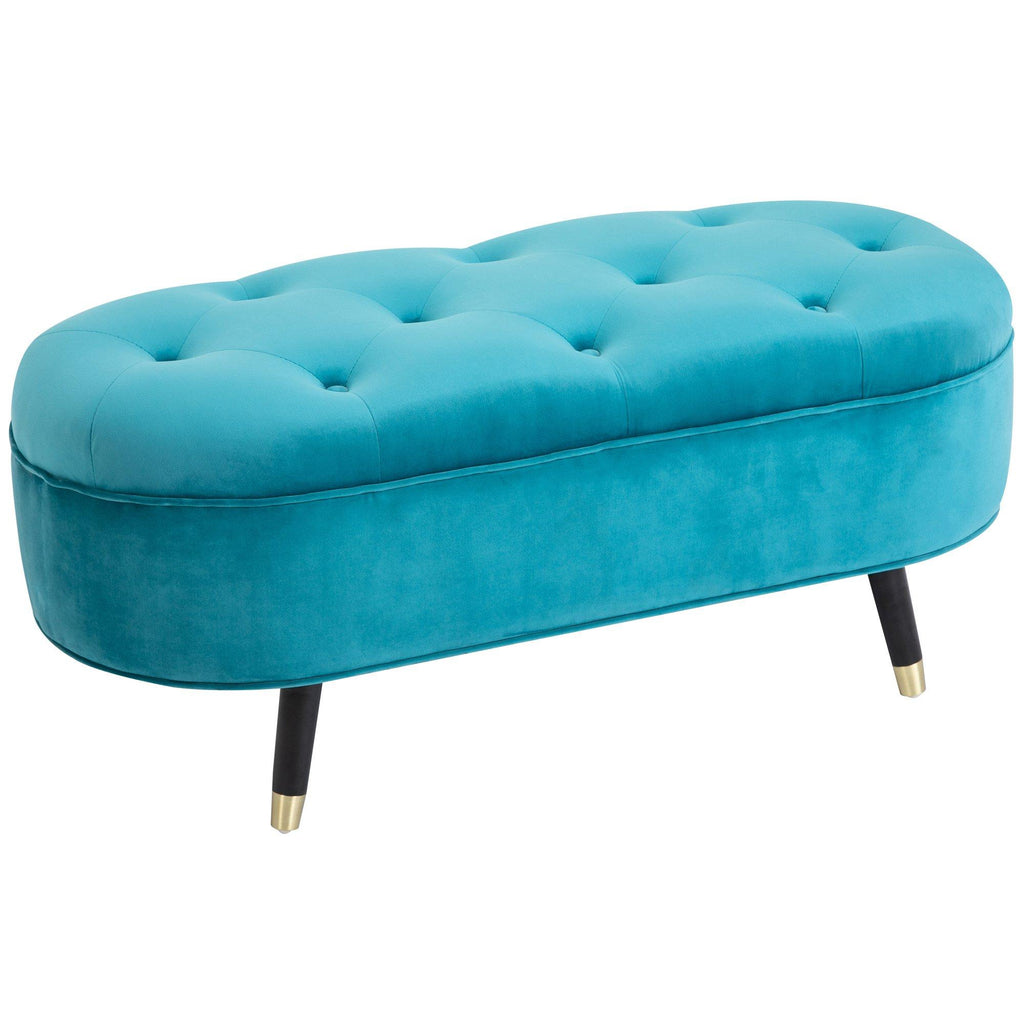 Banc rembourré en tissu velours 107x36x48 cm Bleu