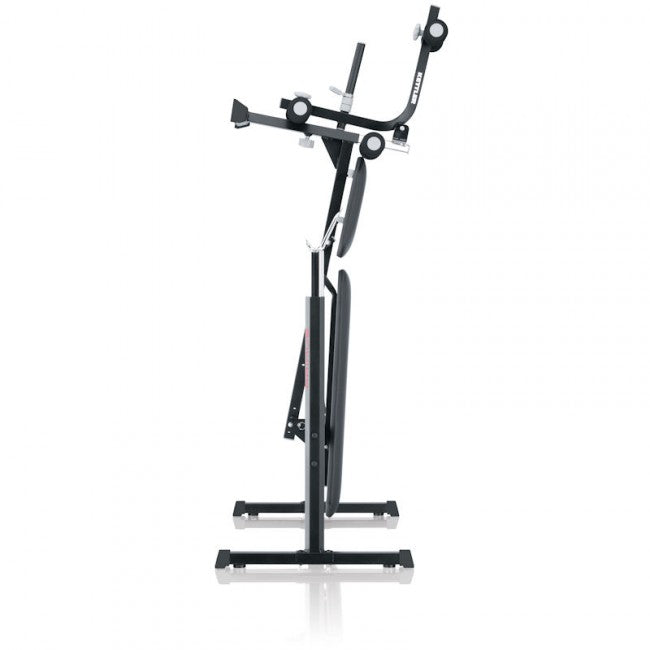 Un banc polyvalent avec un support d'haltères réglable en hauteur (poids non inclus) ainsi qu'un fléchisseur et un extenseur de jambe. Et une fois que vous avez terminé votre entraînement, vous pouvez facilement replier PRIMUS.