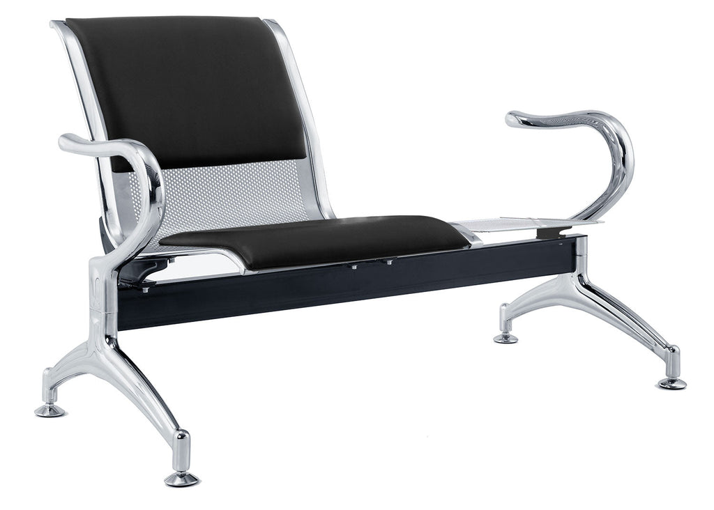 Banc de salle d'attente 1 place bureau avec coussin et table basse en acier et simili cuir argent/noir