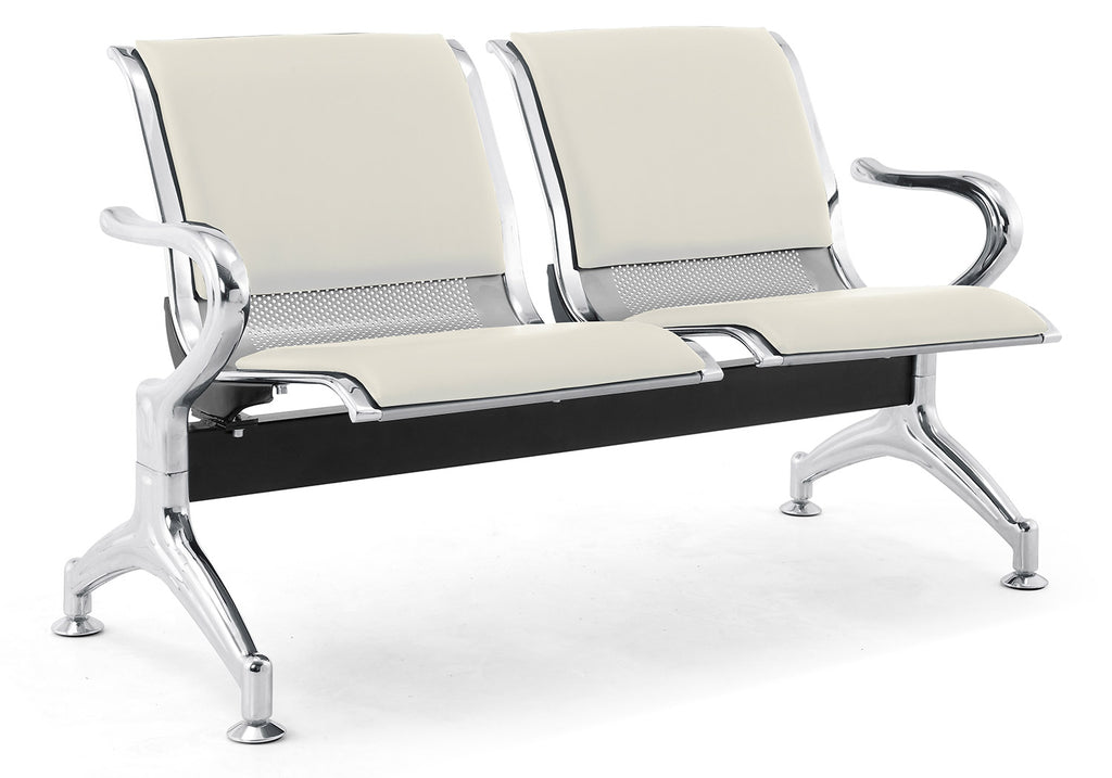 Banc de salle d'attente 2 places pour bureau avec coussin en acier et simili cuir argent/ivoire