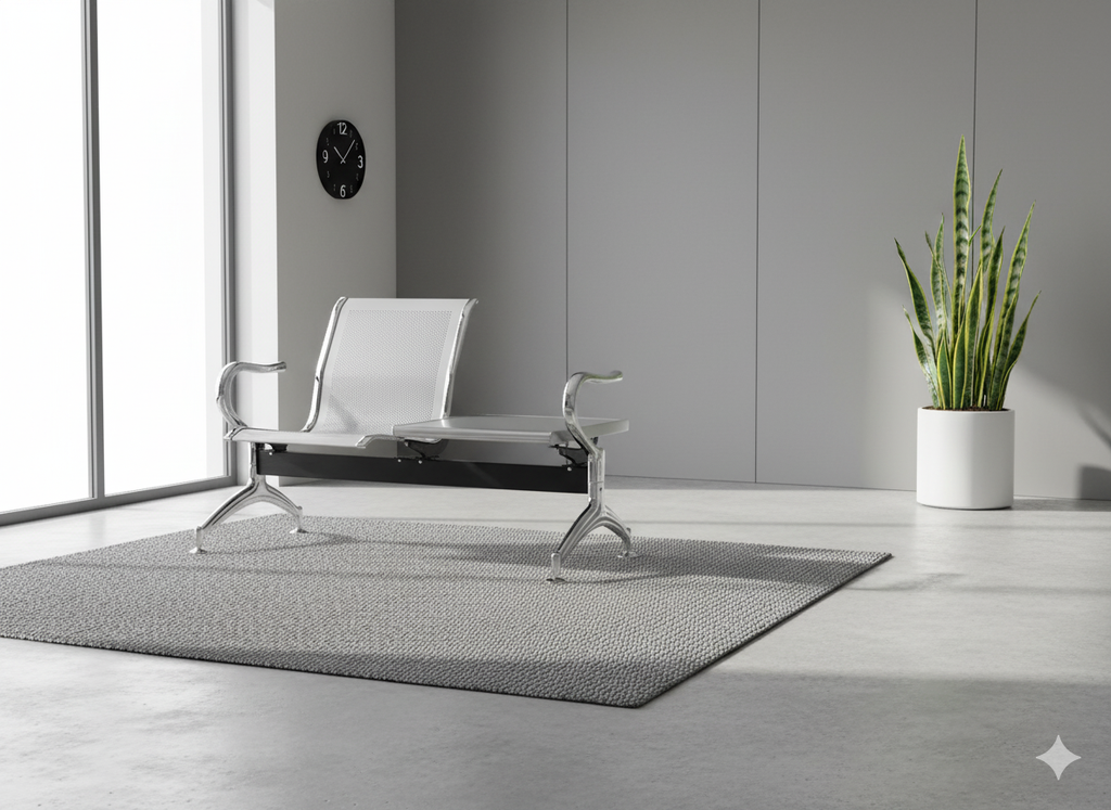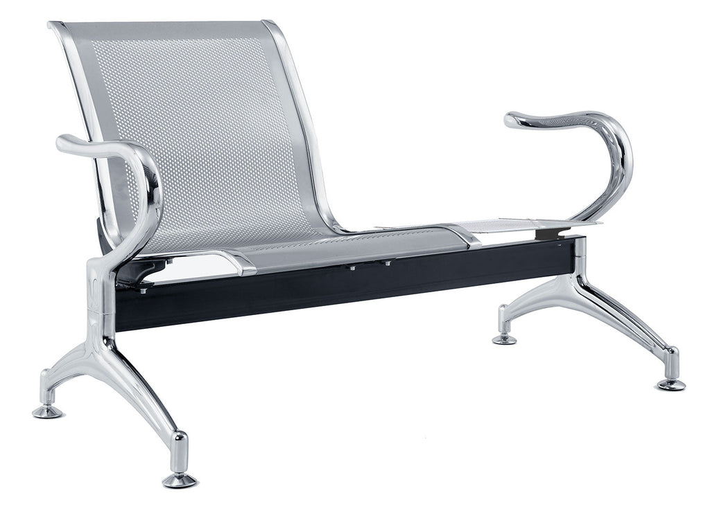 Banc de salle d'attente bureau 1 place avec table en acier argenté