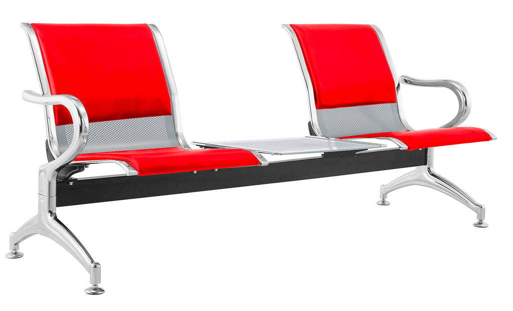 Panca per Sala Attesa 2 Posti da Ufficio con Cuscino e Tavolino in Acciaio e Similpelle Argento/Rosso
