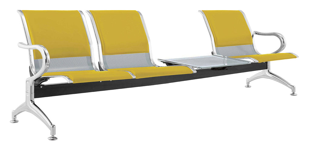 Panca per Sala Attesa 3 Posti da Ufficio con Cuscino e Tavolino in Acciaio e Similpelle Argento/Senape