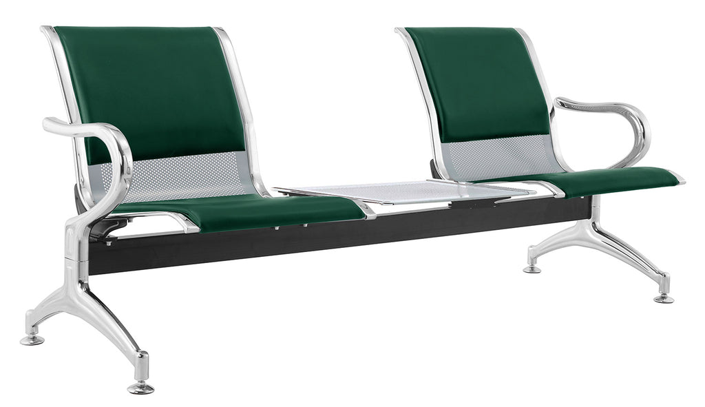 Panca per Sala Attesa 2 Posti da Ufficio con Cuscino e Tavolino in Acciaio e Similpelle Argento/Verde bosco
