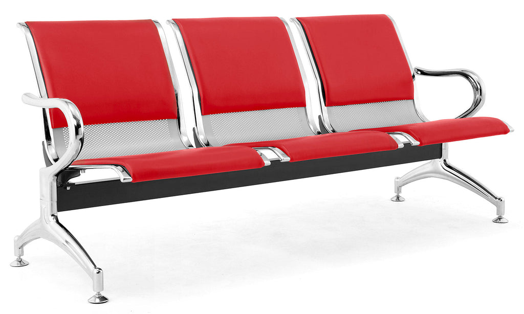 Banc de Bureau pour Salle d'Attente 3 Places avec Coussin en Acier et Simili Cuir Argenté/Rouge