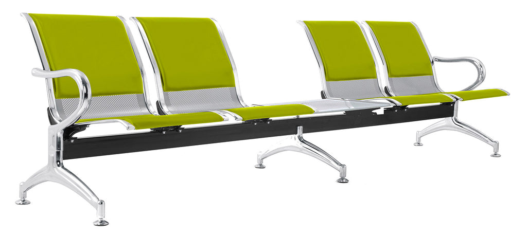 Panca per Sala Attesa 4 Posti da Ufficio con Cuscino e Tavolino in Acciaio e Similpelle Argento/Pistacchio